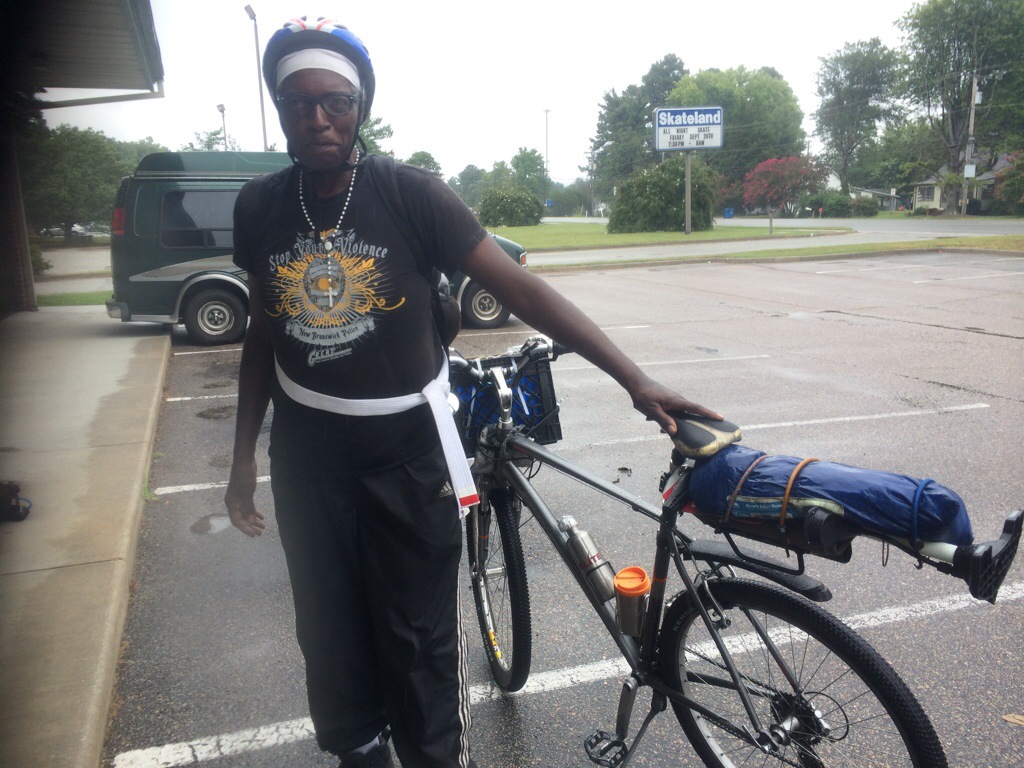 Shane caught Ed off guard by interviewing him with the Gopro but he didn’t skip a beat. He just said how happy he was to find us and to be safe and alive. Ed has been sleeping in parks during the day and riding at night because he feels safer that way. He was recently harassed in a Walmart by two teens as they filmed it. They poured water on his head for no reason that Ed could think of other than it was initiation of some kind and Ed looks like an older, helpless man missing a few teeth. Luckily, he befriended a few kids sitting next to him and the others left him alone. His new friends told him he was part of their family now!
