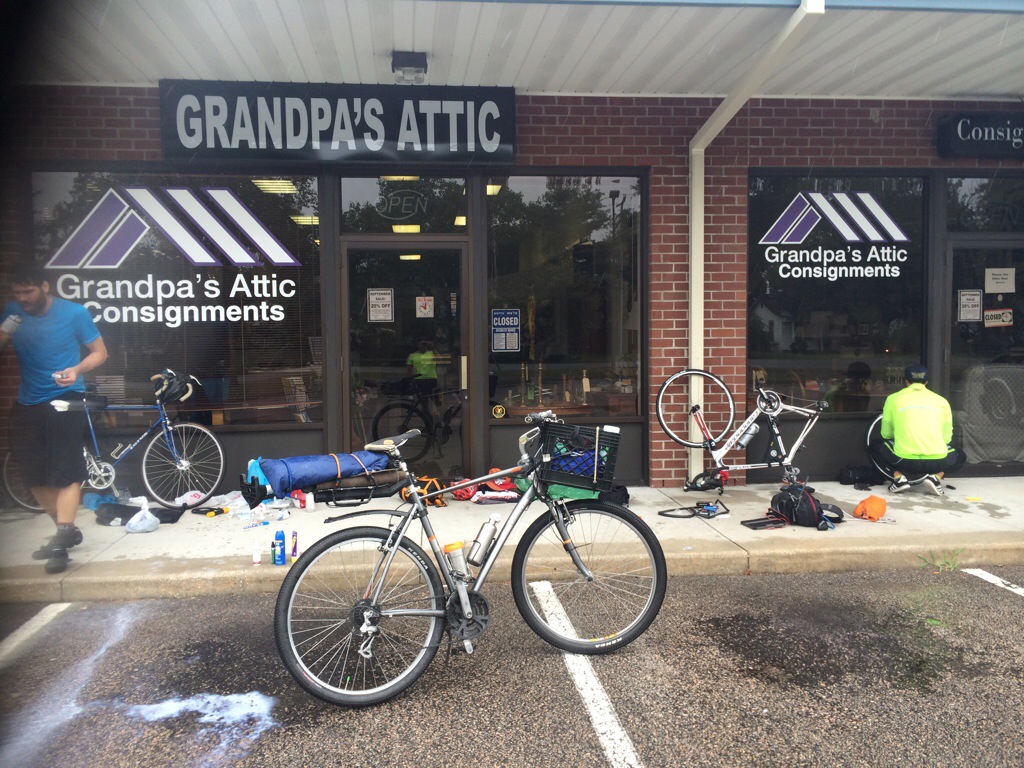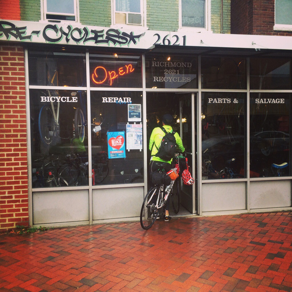 So we left Ed and rode another 20 miles in the rain staying focused on the road and the semi trucks spraying us as we pushed hard for our final destination at a bike shop in Northern Richmond.