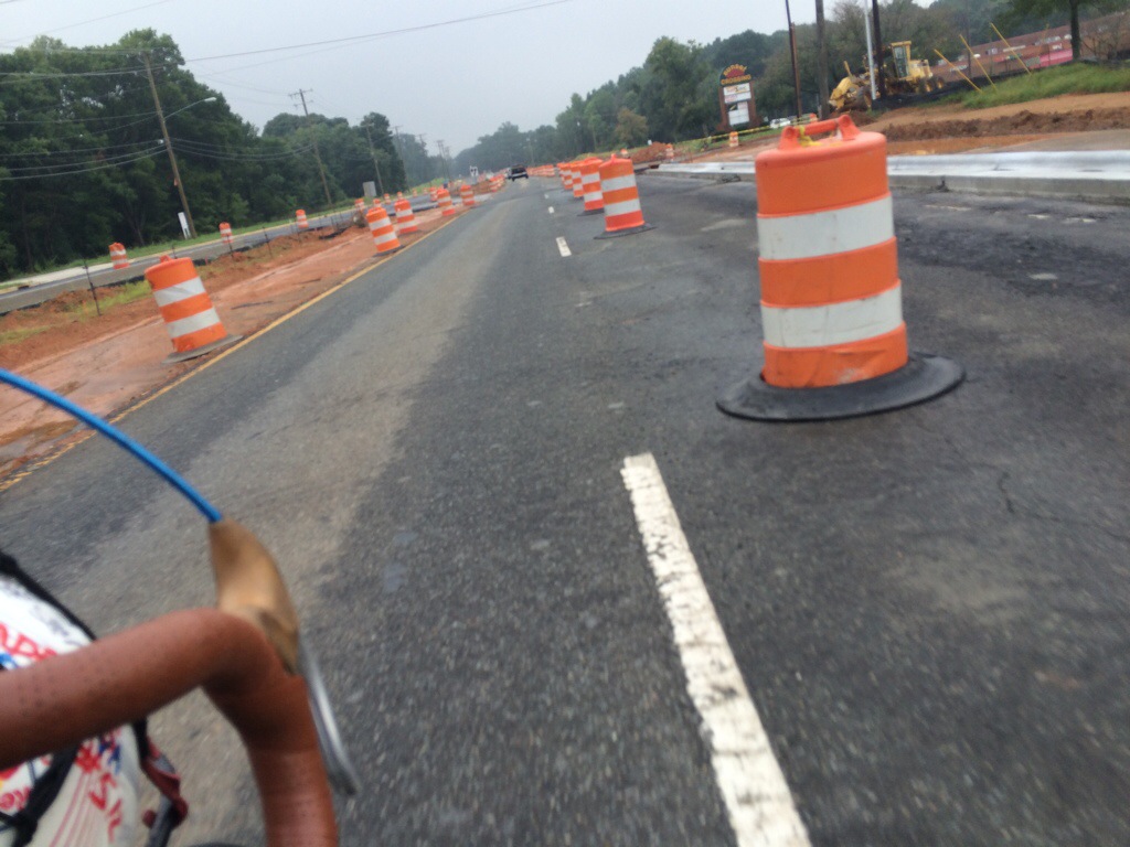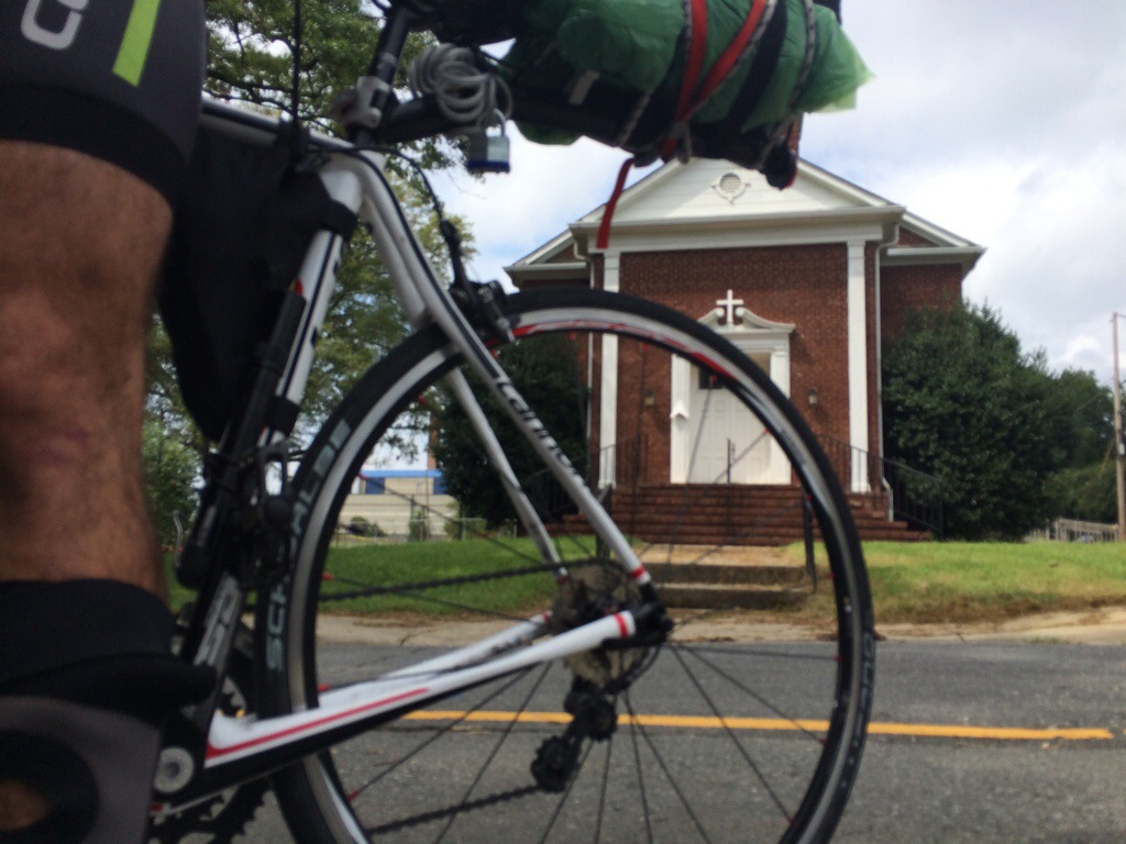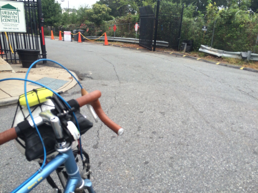 A week ago Sept. 13th seemed so far away with over 400 miles between D.C. And Charlotte. This was a special Saturday because of the Urban Ministry Center art event and because it is not a regular day for Street Soccer Charlotte to have practice but Pete pulled together his crew of 14 people and we were able to squeeze in a fun “Show Up” themed soccer practice and scrimmage. We started practice with a team talk and sharing what “show up” means on and off the field. I was able to use my morning ride as an example. The 20 mile ride from Davidson was one of the scariest stretches yet for me. It not only was the first time I’ve been alone on the road, but it was raining and the suggested route was packed with cars re-routed due to the interstate being shut down. I fell off the bike crossing a slippery, slanted train track and my back right Ortlieb bag fell off. I brushed off the gravel and fixed my bag. Thankfully I was okay and my bike was still ridable. The next 15 miles I was very alert and felt like my senses were super charged. Although I was frightened and unsure of the road ahead I just kept pushing and hoping the shoulder would get bigger or that a bike lane would eventually appear. I saw a chance to get off the suggested route and try a new road so I did and it was much safer and a straight ride in to Charlotte. This was also about the same time the rain let up so I put my speaker back on the ball and rode my hardest to make it to practice by 10 am. I managed to “Show Up” early despite all the set backs. 20 plus miles in 1.5 hours followed by a two hour practice and intense scrimmage was a nice way to start our “day off”!