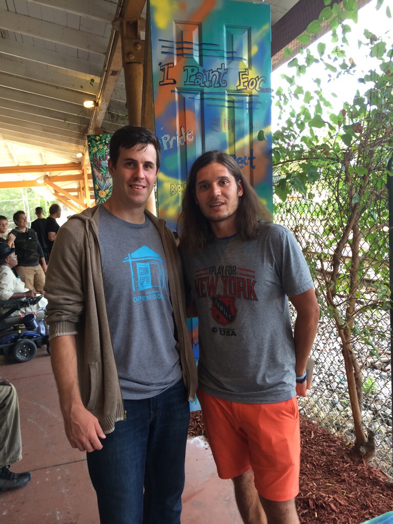 Street Soccer Chicago coach Otto happened to be in town so we all went to the art gallery event where the homeless artists got to display they talents at the “Hope Is An Open Door” gallery. We got to meet all the staff and volunteers and artists at the Urban Ministry Center and Shane even bought a nice piece called “Garden Party” half of the proceeds goes to the artist and half goes to the Artworks 945 program.