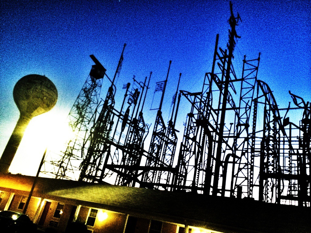 We had them sign the New York Red Bulls (big thanks to them for sharing our journey on Instagram yesterday!) soccer ball and hit the road another 30 something miles to Brownsville where we found a cheap hotel with a very weird art installation above it. It was by far the cheapest hotel we’ve stayed at and it’s quality was on par with the Chinese food buffet we had next door for dinner.
