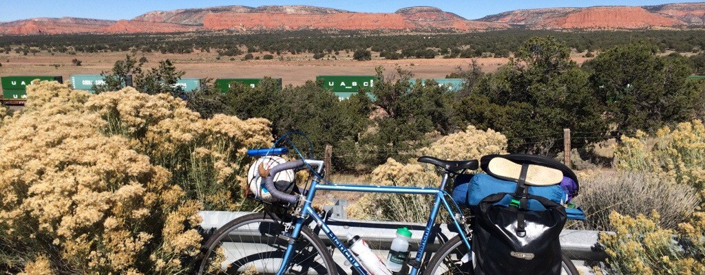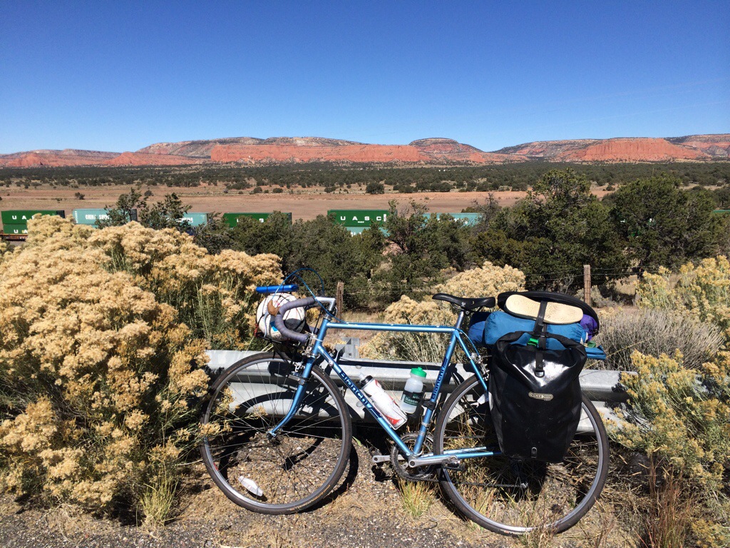 We rode about 50 miles with only one stop at a Denny’s (3 out of 4 of our last meals were at a Denny’s) for lunch and then another 20 miles to Mentmore just past Gallup and Red Rock Park. It was a hard day with some hills, high winds and loose gravel shoulders but it still feels like living a dream. The big reminder for me that this trip is a once in a lifetime experience was crossing the Continental Divide.