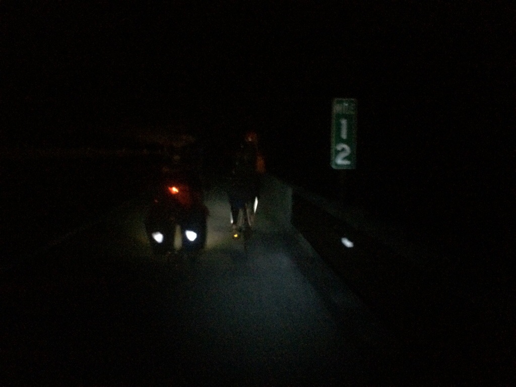 We didn’t realize that the last 12 miles of Highway 68 from Kingman to Laughlin, NV was a 12 mile 6% downgrade. It was pretty intense and fun to cut through the mountains while overlooking the lights of a mini Las Vegas. We got a cheap hotel in a casino and ate a healthy meal at In and Out Burger. We were on the road for 14 hours and bike for 11 of those hours so the beds felt so good!