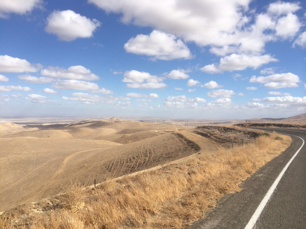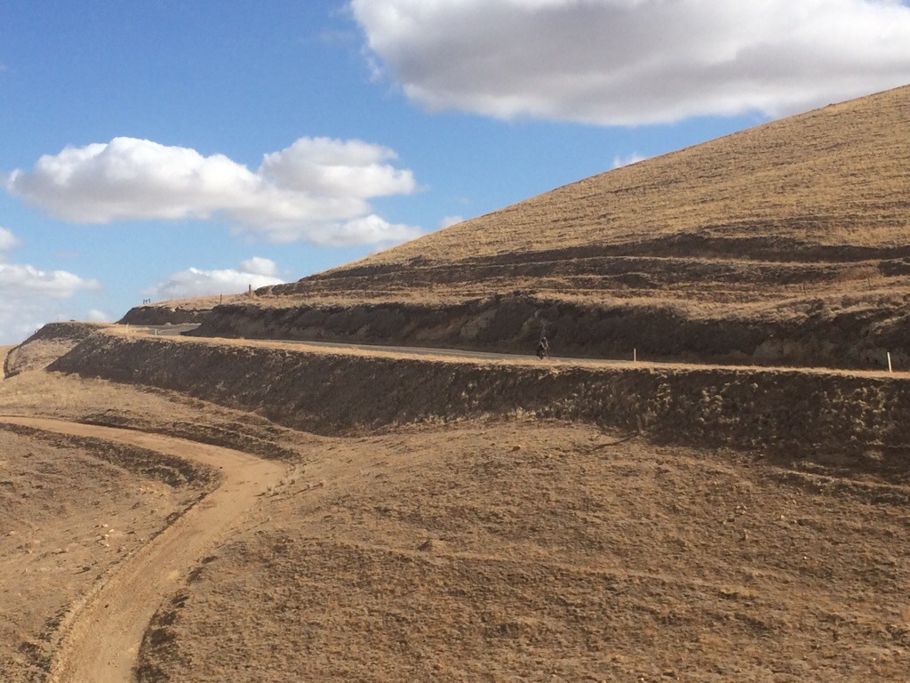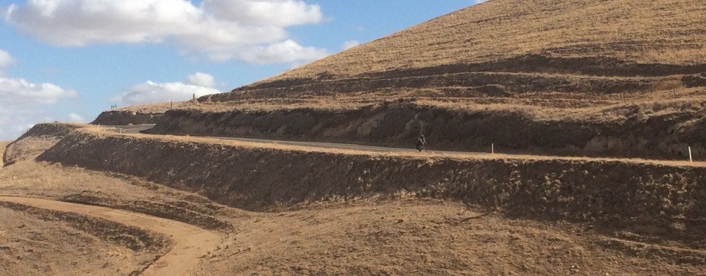 From Buttonwillow to Mcittrick it was only about 12 miles with a gradual incline. It was nice having Hagit join us for this morning session and then we had a nice lunch at Mike and Annie’s restaurant in McKittrick around 11:30. This was the last place for food or water for the next 76 miles so we took our time loading up on energy and water. The triple decker PB&J’s to go would end up being lifesavers later on. We said goodbye to Hagit and rode off into the never-ending mountain range that stood between us and the coast.